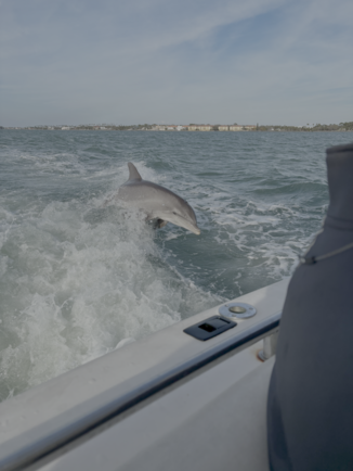 YOU WILL SEE DOLPHINS AND SOMEDAYS WE SEE SPOTTED SEA RAYS, SEA TURTLES, PLUS MANATEES!