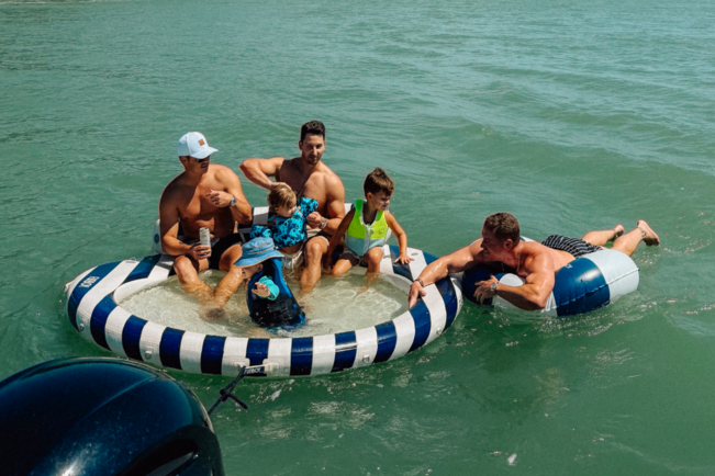 This unique on-the-water experience is all about unplugging and getting back to the basics: sun on your face, toes in the water, and not a single notification in sight. Cruise the warm Gulf Coast waters, drop anchor at a sandbar, and embrace a day filled with sun, snacks, and pure fun aboard a brand-new 2025 Godfrey Tritoon—complete with stylish inflatables from our friends at Funboy.