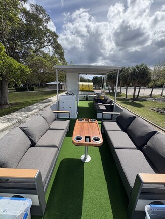 The custom 24ft pontoon boat was a labor of love. Sourced in Lake Okeechobee, Ricardo and his family spent the next 6 months taking the boat down to studs and rebuilding everything. Designed to be comfortable and accommodating, the Ohana Boat offers comfortable seating, a surfboard-styled teak table, built-in shade from stem to stern, two stocked coolers (liquor excluded), and most importantly an oversized Lilly Pad that is an incredibly fun toy for kids and a great place for the adults to lay back and relax.