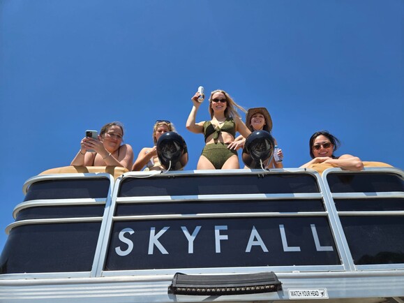 Skyfall comes fully equipped with an Infinity Sound System and Bluetooth speakers, allowing you to connect your favorite playlists and enjoy premium sound while cruising. For in-the-water fun, the rental includes a Lily Pad, foam pool noodles, and life vests, making it easy for everyone to enjoy swimming and floating safely. The boat is perfect for mixing relaxation with activity, ensuring your group has a variety of ways to enjoy the lake.