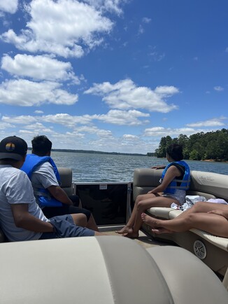 Enjoy your favorite playlists through the onboard stereo with auxiliary input and Bluetooth audio, keeping the mood lively whether cruising or anchored. Safety is a priority: children's life jackets are provided and the stable pontoon chassis makes boarding easy for all ages. Bring pets along for the adventure—the boat is pet-friendly—and take leisurely swims from the swim-ready stern. An anchor is onboard for peaceful stops at coves or lakeside picnics.