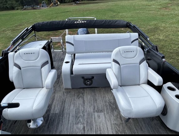 The Crest 240 Tritoon offers spacious, family-friendly pontoon cruising with performance and comfort. Powered by a smooth 200HP motor, this tritoon delivers confident acceleration for watersports or relaxed lake cruising. Plush wraparound seating and a floating island create versatile lounging spaces; an onboard cooler/ice chest and designated storage keep refreshments chilled and tidy. A swim ladder, readily accessible anchor, and children’s life jackets prioritize safety for guests of all ages, while a dedicated tube and tow points add excitement for thrill-seekers.